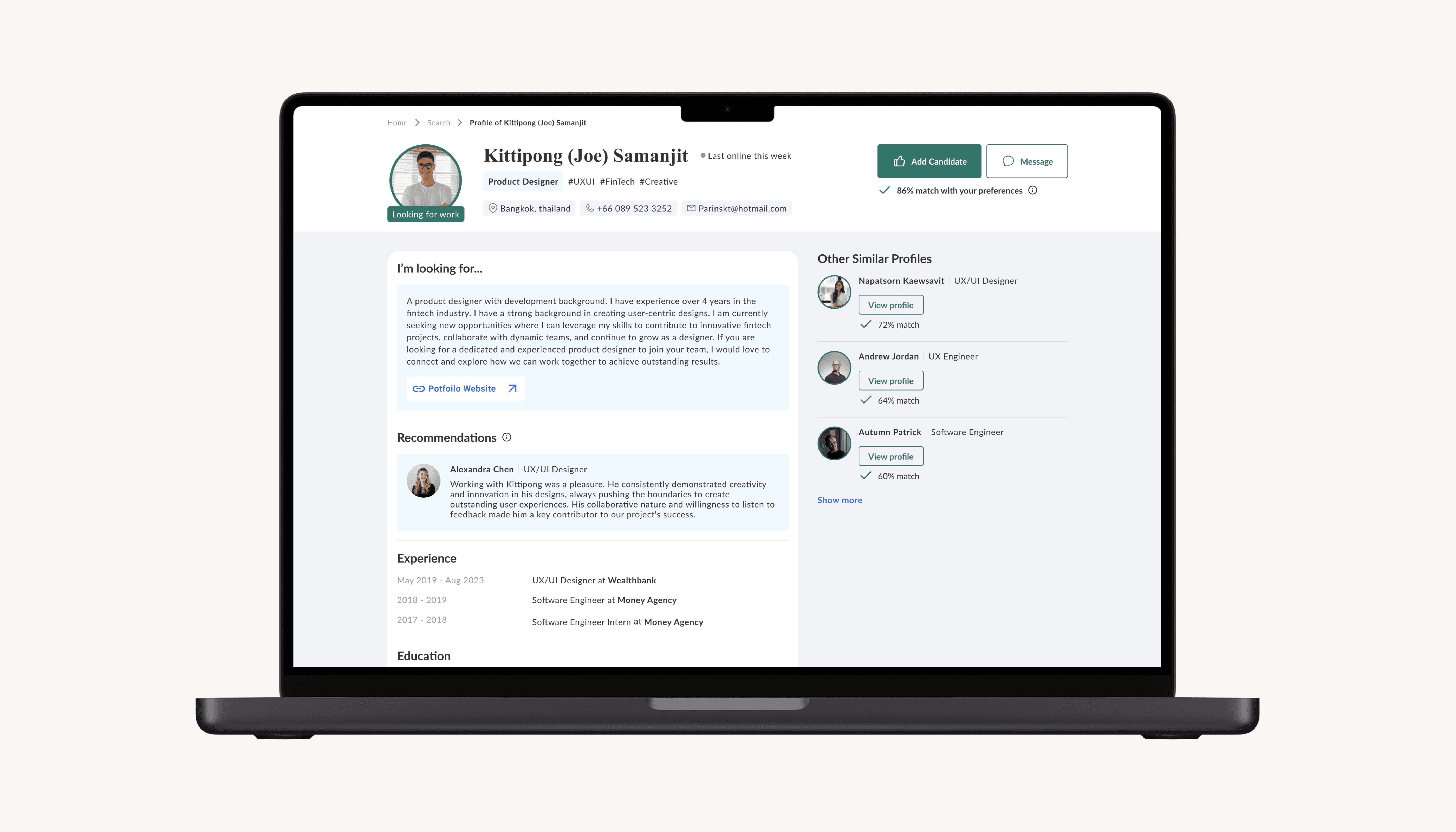 Task: As a UI/UX designer for a hiring service, your task is to improve the profile page of users based on user feedback. The goal is to make the profile page visually clear and straightforward for potential hiring managers.