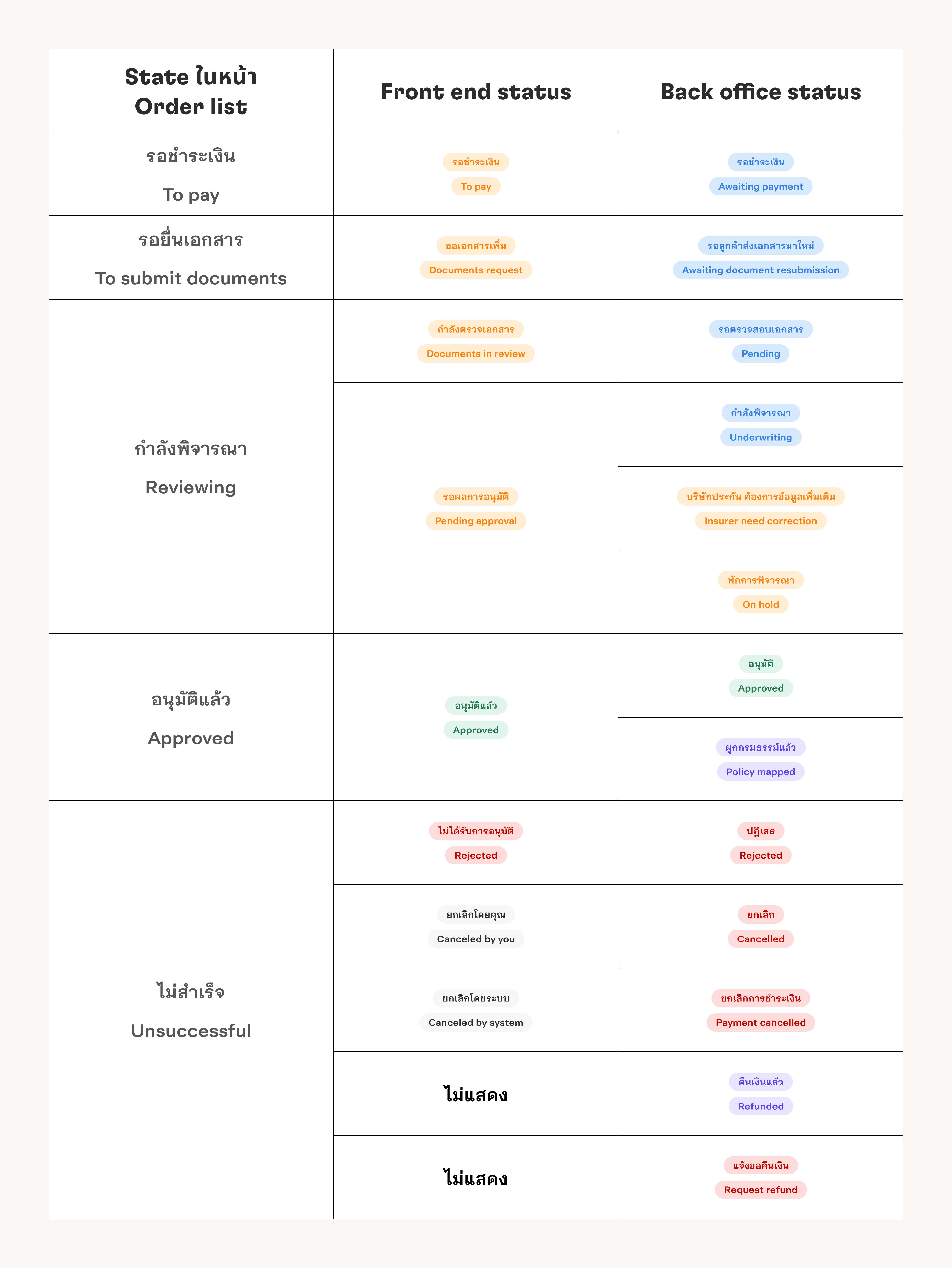 To display these statuses on the front end for customers, we needed to map the back-office statuses to user-friendly terms.