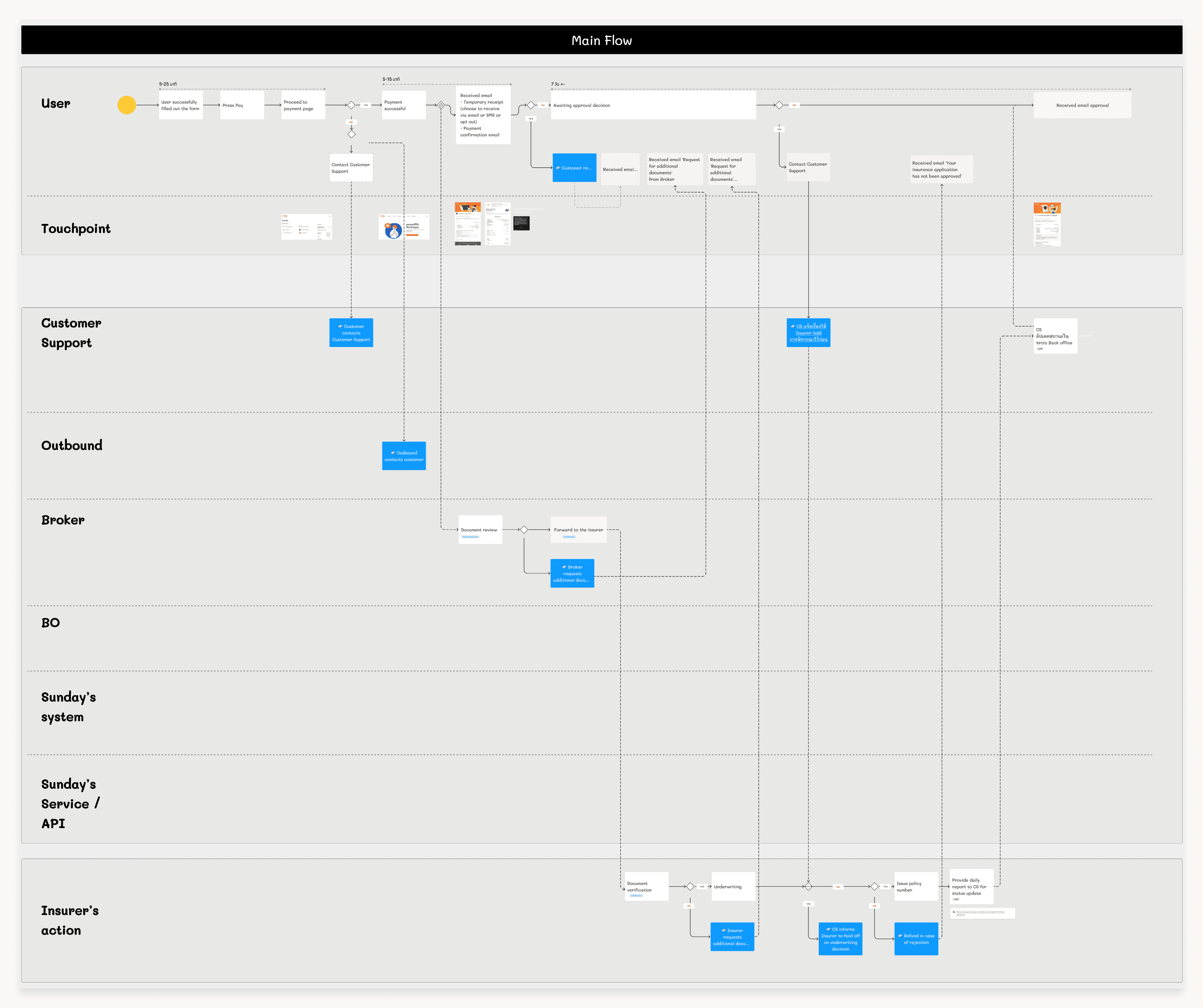 *This image briefly show the as-is customers flow and backstage processes in the insurance purchase journey.