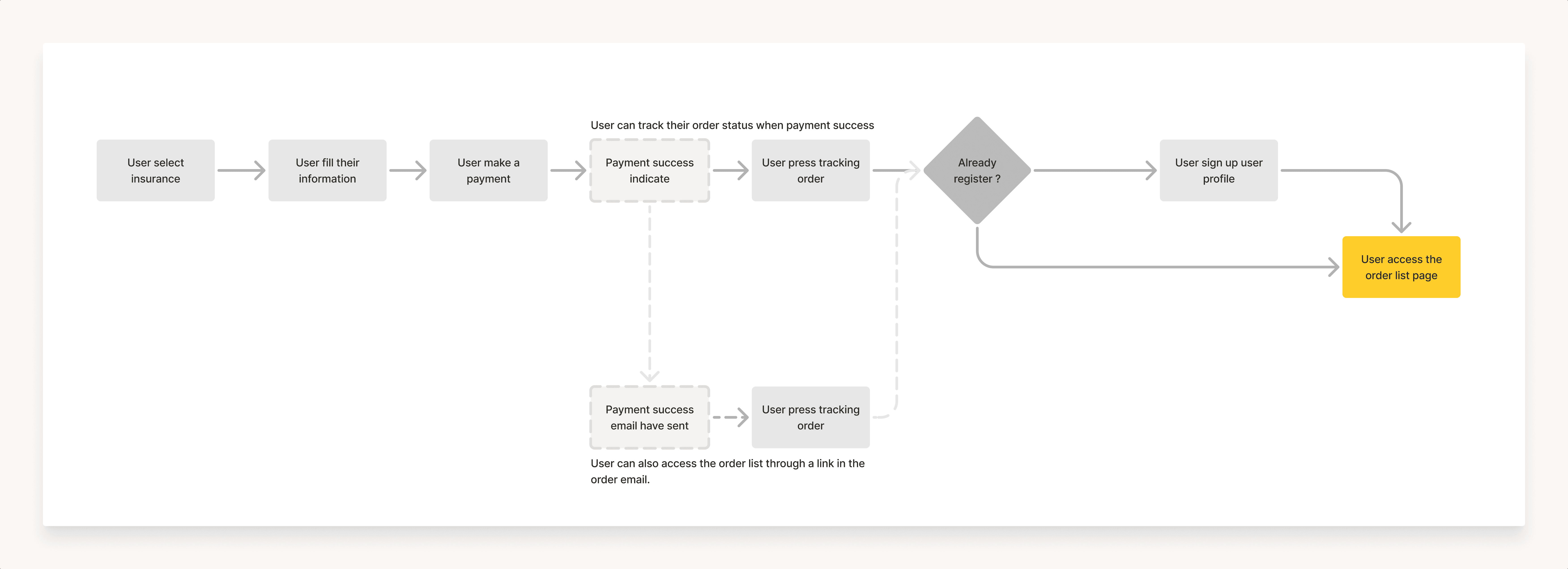 The aim of this project was to address a pain point that lack of visibility into the status of their purchased insurance. We focused on enabling cutomers to track the progress of their insurance process and clearly see which stage of the backend workflow their policy is currently in.