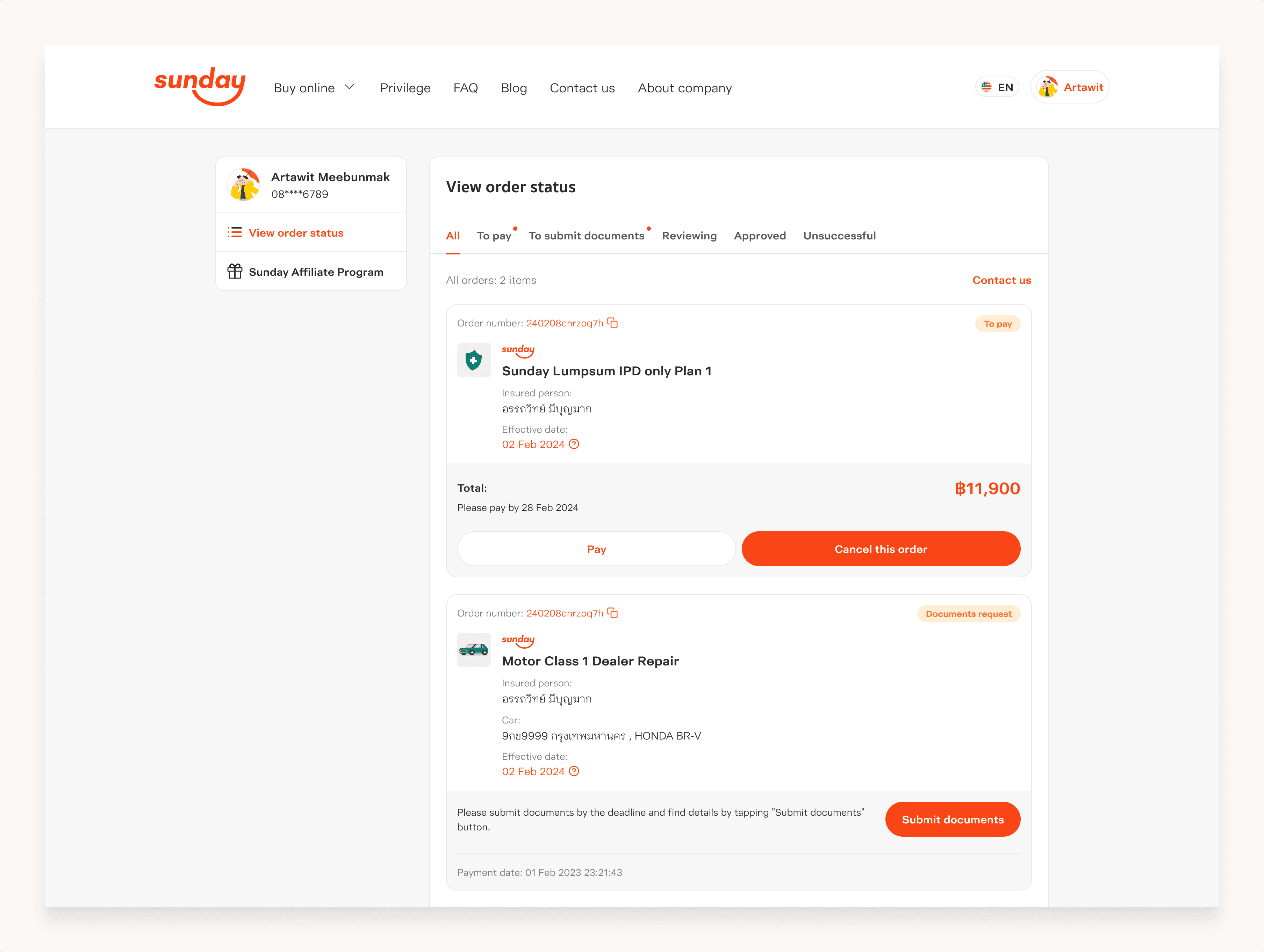 Sunday Orderlist is a project aimed at helping customers track their insurance approval status more efficiently. With over 500 orders per month, this solution makes it easier for customers to track their insurance progress without relying solely on phone calls to customer support.