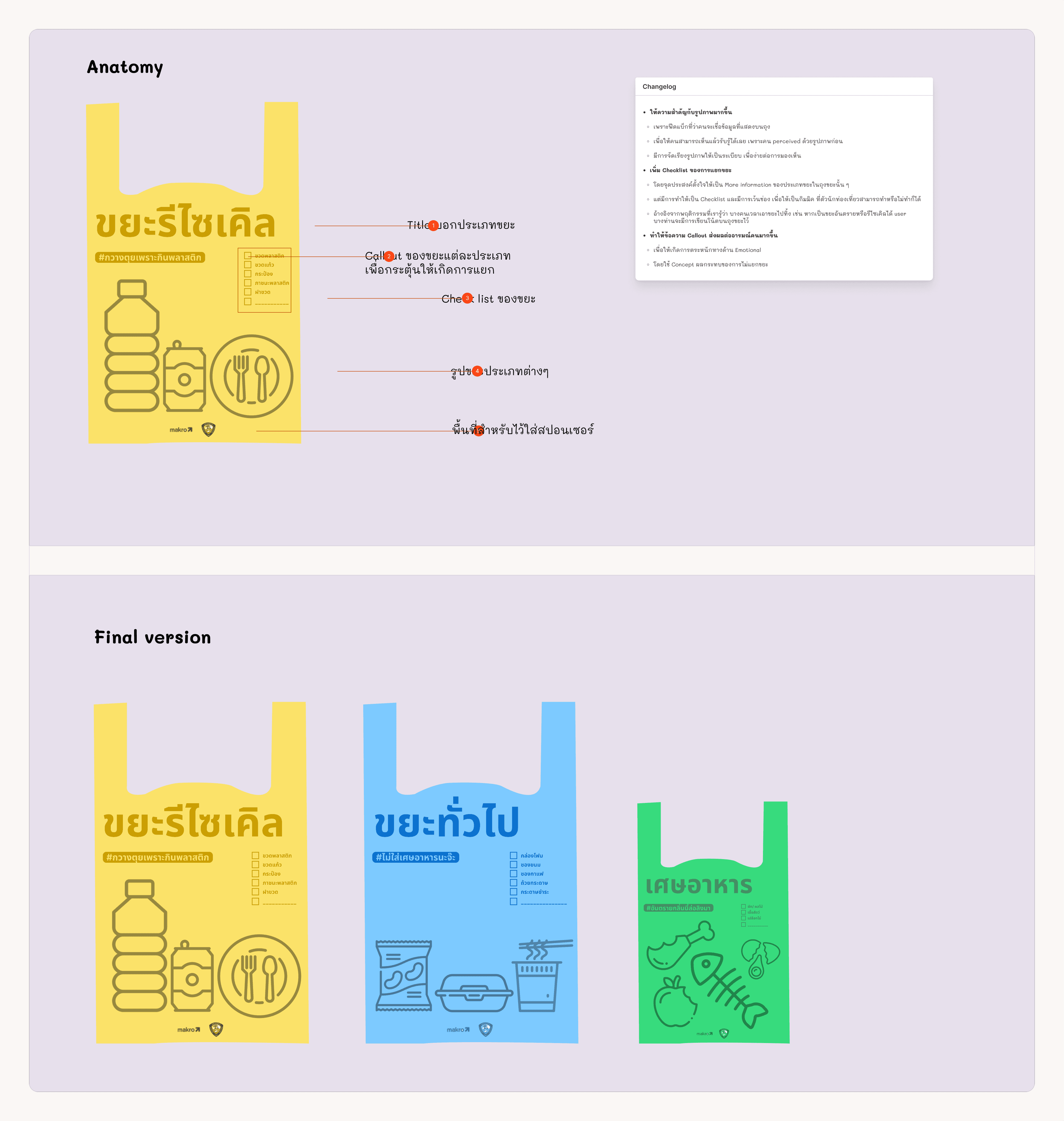 Both the information and color scheme were inspired by Bangkok’s waste management project (โครงการไม่เทรวม)